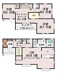 | 間取り | 2SLDK 間取り内訳:リビングダイニングキッチン 19.2帖(1階)・洋室 6.1帖(2階)・洋室 8.7帖(2階)・収納 |