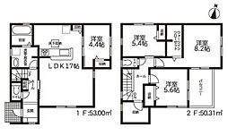 | 間取り | 5LDK 間取り内訳:リビングダイニングキッチン 16帖(1階)・洋室 5.4帖(1階)・洋室 5帖(2階)・洋室 5帖(2階)・洋室 6.7帖(2階)・洋室 5帖(2階) |