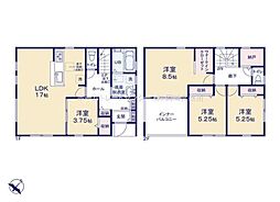 | 間取り | 4LDK 間取り内訳:リビングダイニングキッチン 16帖(1階)・洋室 4.5帖(1階)・洋室 5帖(2階)・洋室 5帖(2階)・洋室 8.7帖(2階) |