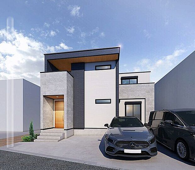 LDKは対面式キッチン採用。お車2台並列駐車可能な新築戸建てです。