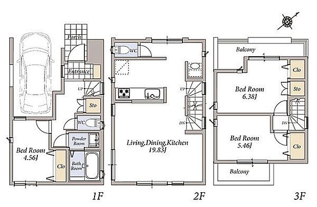 | 間取り | 3LDK | 建物階 | 木造、地上3階建て |