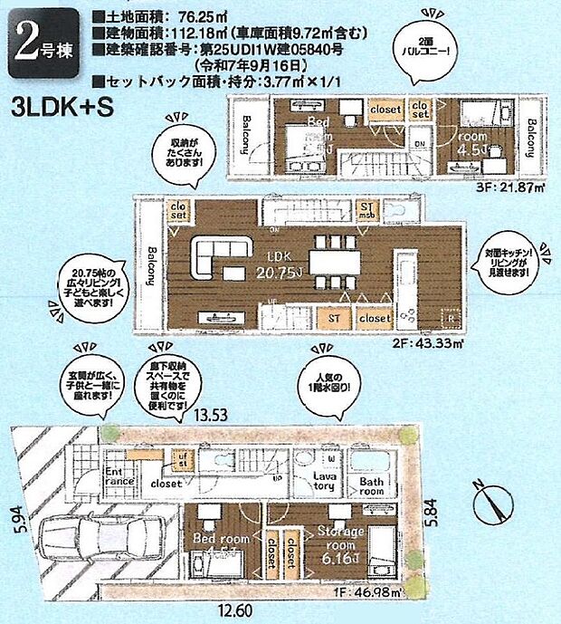 | 土地面積 | 76.25m2・81.76m2 | ||
