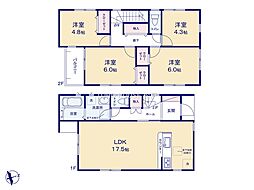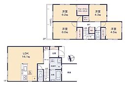 間取り内訳:リビングダイニングキッチン 16.1帖(1階)・洋室 6.2帖(2階)・洋室 4.3帖(2階)・洋室 6帖(2階)・洋室 4.5帖(2階)