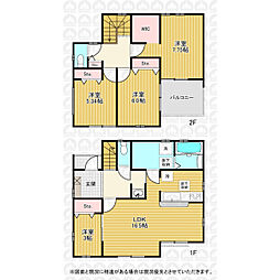 間取り内訳:リビングダイニングキッチン 16.5帖(1階)・洋室 3帖(1階)・洋室 7.7帖(2階)・洋室 6帖(2階)・洋室 5.3帖(2階)