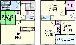 | 間取り | 4LK 間取り内訳:リビングダイニングキッチン 18.7帖(1階)・和室 4.5畳(1階)・洋室 7帖(2階)・洋室 6帖(2階)・洋室 5.2帖(2階) |