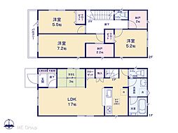 | 間取り | 2LDK 間取り内訳:リビングダイニングキッチン 18.7帖(1階)・洋室 8帖(2階)・洋室 6帖(2階)・収納 6帖(2階) |