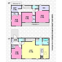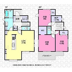 | 間取り | 3LDK 間取り内訳:リビングダイニングキッチン 21帖(1階)・洋室 8帖(2階)・洋室 6.5帖(2階)・洋室 6帖(2階) |