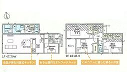 | 間取り | 3LDK 間取り内訳:リビングダイニングキッチン 17帖(1階)・洋室 7.2帖(2階)・洋室 5.7帖(2階)・洋室 6帖(2階) |