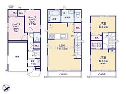 | 間取り | 2LDK(+(S)) 間取り内訳:収納 7.2帖(1階)・リビングダイニングキッチン 18.9帖(2階)・洋室 5.3帖(3階)・洋室 5.1帖(3階) |
