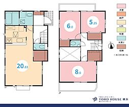 LDKにはロフト付き。南西側6.3m公道に面した2階建て新築分譲住宅です。