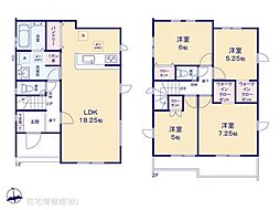 間取り内訳:リビングダイニングキッチン 15帖(1階)・洋室 5.2帖(1階)・洋室 7.5帖(2階)・洋室 6.5帖(2階)・洋室 5.2帖(2階)
