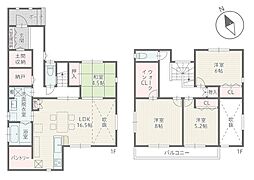 | 間取り | 5LDK 間取り内訳:リビングダイニングキッチン 15.7帖(1階)・洋室 3.7帖(1階)・洋室 6.2帖(2階)・洋室 5帖(2階)・洋室 5帖(2階)・洋室 4.5帖(2階) |