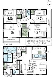 | 間取り | 4LDK 間取り内訳:リビングダイニングキッチン 19帖(1階)・洋室 6.7帖(2階)・洋室 6.1帖(2階)・洋室 5.2帖(2階)・洋室 5.2帖(2階) |