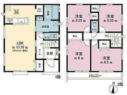 | 間取り | 3LDK 間取り内訳:リビングダイニングキッチン 20帖(1階)・洋室 7.7帖(2階)・洋室 6帖(2階)・洋室 5.5帖(2階) |