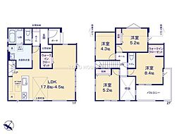 | 間取り | 4LDK 間取り内訳:リビングダイニングキッチン 17帖(1階)・洋室 4.5帖(1階)・洋室 11.7帖(2階)・洋室 5.2帖(2階)・洋室 5.2帖(2階) |