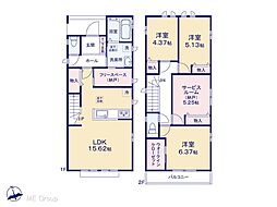 | 間取り | 3SLDK 間取り内訳:リビングダイニングキッチン 15.6帖(1階)・収納 2.2帖(1階)・洋室 6.3帖(2階)・洋室 5.1帖(2階)・洋室 4.3帖(2階)・収納 5.2帖(2階) |