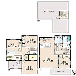 | 間取り | 4LDK 間取り内訳:リビングダイニングキッチン 21.9帖(1階)・洋室 7.6帖(2階)・洋室 6.6帖(2階)・洋室 5.2帖(2階)・洋室 3.7帖(2階) |
