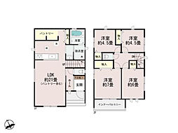 | 間取り | 4LDK 間取り内訳:リビングダイニングキッチン 21帖(1階)・洋室 7帖(2階)・洋室 6帖(2階)・洋室 4.5帖(2階)・洋室 4.5帖(2階) |