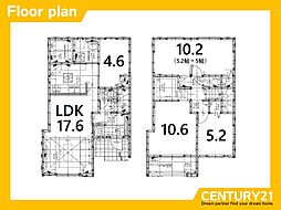 | 間取り | 4LDK 間取り内訳:リビングダイニングキッチン 16帖(1階)・洋室 5.2帖(1階)・洋室 8帖(2階)・洋室 7帖(2階)・洋室 7帖(2階) |