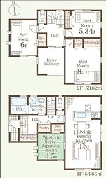 間取り内訳:リビングダイニングキッチン 17帖(1階)・和室 5畳(1階)・洋室 7帖(2階)・洋室 5.2帖(2階)・洋室 5.2帖(2階)・収納(2階)