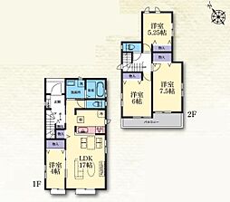 | 間取り | 2SLDK(ウォークインクローゼット・シューズインクローゼット・パントリー・DEN) 間取り内訳:リビングダイニングキッチン 19.5帖(2階)・洋室 7帖(1階)・洋室 5.3帖(1階)・収納 5.3帖(1階) |