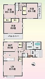 間取り内訳:洋室 5.3帖(2階)・リビングダイニングキッチン 18帖(1階)・洋室 6.5帖(2階)・洋室 5帖(2階)・洋室 5.3帖(2階)