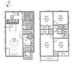 | 間取り | 4LDK 間取り内訳:リビングダイニングキッチン 20帖(1階)・洋室 5.2帖(2階)・洋室 7.5帖(2階)・洋室 5.2帖(2階)・洋室 5.2帖(2階) |
