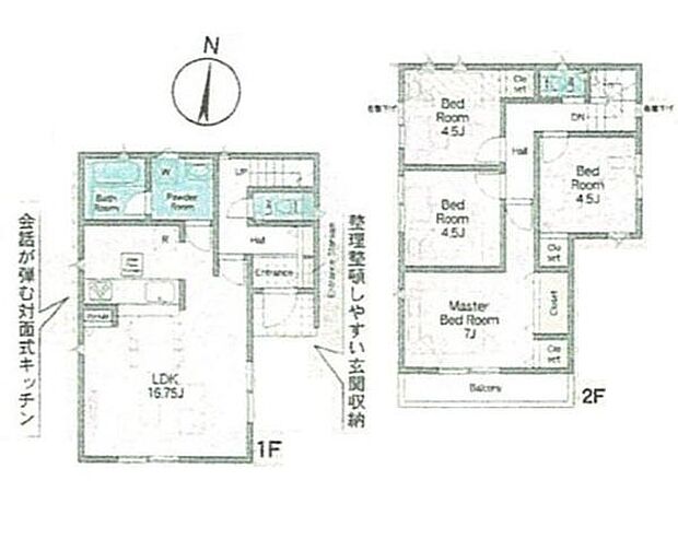 | 間取り | 4LDK 間取り内訳:リビングダイニングキッチン 16.7帖(1階)・洋室 4.5帖(2階)・洋室 4.5帖(2階)・洋室 7帖(2階)・洋室 4.5帖(2階) |