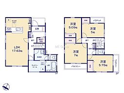 | 間取り | 4LDK 間取り内訳:リビングダイニングキッチン 18.6帖(1階)・洋室 4.5帖(2階)・洋室 5.3帖(2階)・洋室 6.5帖(2階)・洋室 5.1帖(2階) |