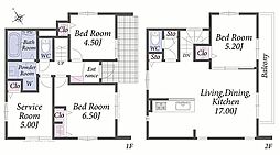 | 間取り | 4SLDK 間取り内訳:リビングダイニングキッチン 20.3帖(1階)・洋室 8.5帖(2階)・洋室 6.5帖(2階)・洋室 6帖(1階)・洋室 6帖(2階)・収納 6帖(2階) |