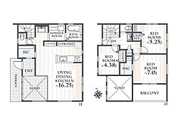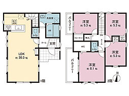 | 間取り | 4LDK 間取り内訳:リビングダイニングキッチン 20.3帖(1階)・洋室 8.1帖(2階)・洋室 5.3帖(2階)x3 |