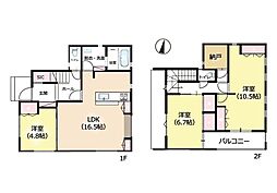 | 間取り | 3SLDK 間取り内訳:リビングダイニングキッチン 20.1帖(1階)・洋室 4.5帖(2階)・洋室 5帖(2階)・洋室 7.5帖(2階)・収納 4.7帖(2階) |