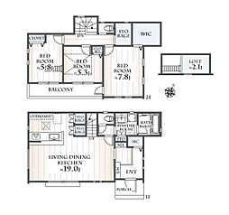 | 間取り | 4LDK 間取り内訳:リビングダイニングキッチン 17帖(1階) |