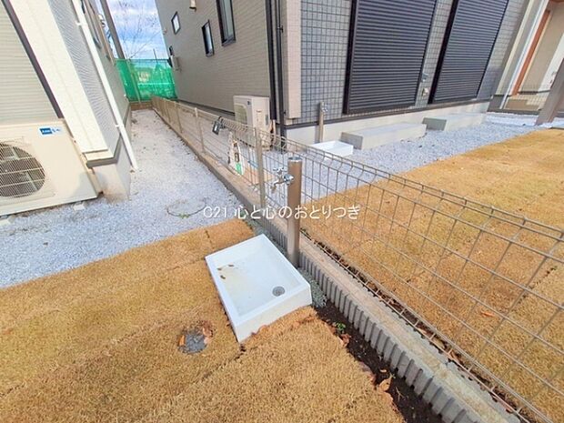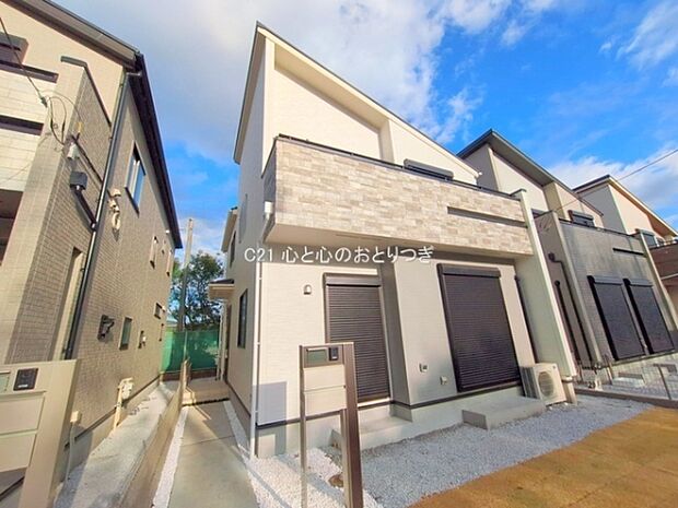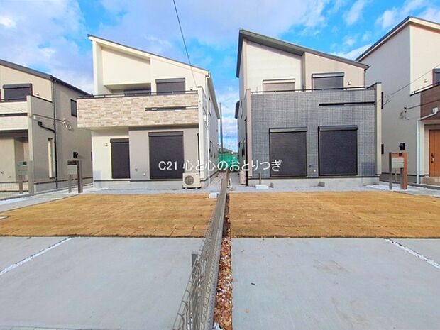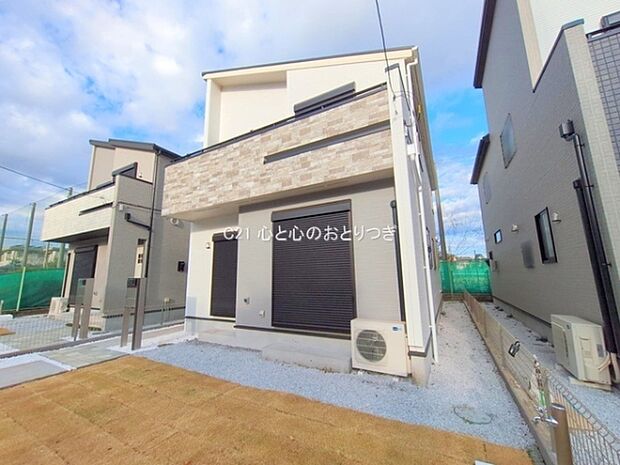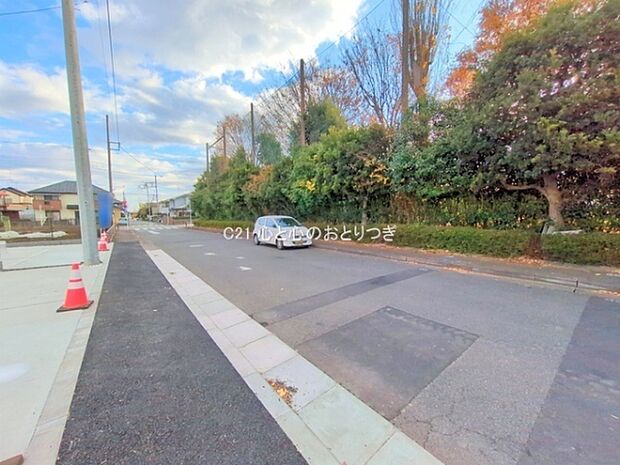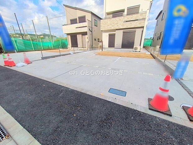 南東側道路に面しており日当たり良好。ゆとりの敷地約56坪。車3台並列駐車可能です。建物完成済。