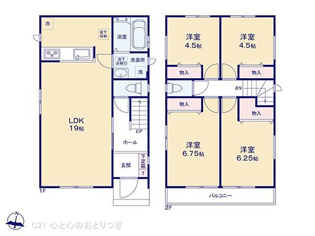 間取り内訳:リビングダイニングキッチン 19帖(1階)