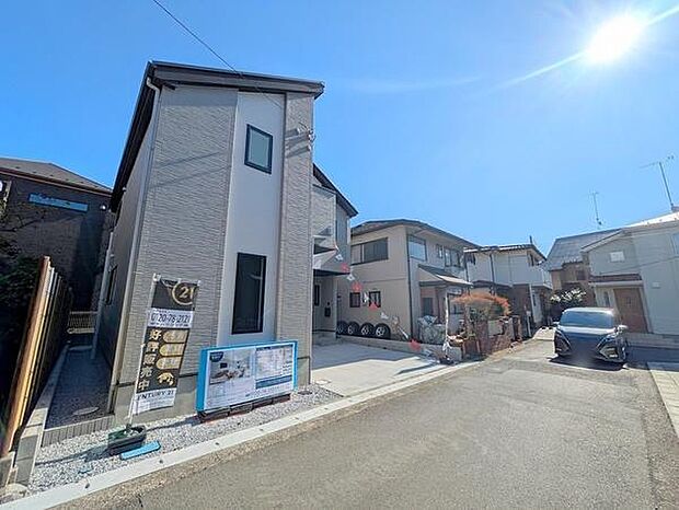 約32坪の整形地。車2台並列駐車可能です。建物完成済。お気軽に内覧していただけます。