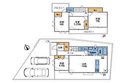 | 間取り | 3LDK 間取り内訳:リビングダイニングキッチン 18.5帖(1階)・洋室 13.1帖(2階)・洋室 5帖(2階)・洋室 4.9帖(2階) |