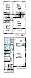 間取り内訳:リビングダイニングキッチン 17帖(1階)・洋室 5.5帖(2階)・洋室 5.3帖(2階)・洋室 4.5帖(2階)