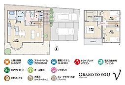| 間取り | 4SLDK 間取り内訳:リビングダイニングキッチン 16帖(1階)・収納 2帖(1階)・和室 5畳(1階)・洋室 5.2帖(2階)x2・洋室 7.5帖(2階) |