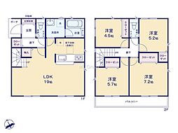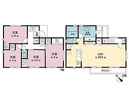 | 間取り | 4SLDK 間取り内訳:リビングダイニングキッチン 16帖(1階)・和室 4.5畳(1階)・洋室 6帖(2階)・洋室 6帖(2階)・洋室 8帖(2階)・収納 3帖(2階) |