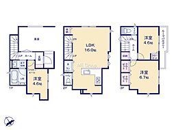 | 間取り | 3SLDK 間取り内訳:洋室 5.1帖(2階)・リビングダイニングキッチン 17.2帖(1階)・収納 4.8帖(1階)・洋室 8.6帖(2階)・洋室 5.6帖(2階) |
