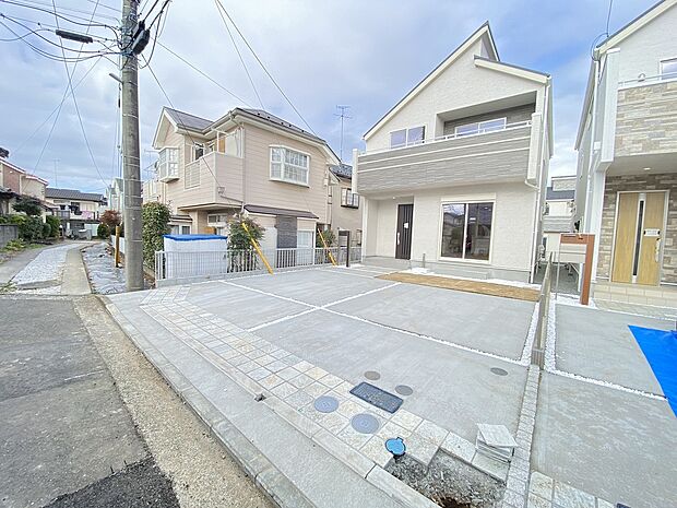 折上天井の広々としたLDK20帖 並列2台駐車可能なカースペース。廊下収納や各居室CL付で収納豊富。