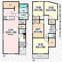| 間取り | 3SLDK 間取り内訳:リビングダイニングキッチン 20.1帖・洋室 6.1帖・洋室 5.2帖・洋室 4.5帖・収納 4.5帖 |