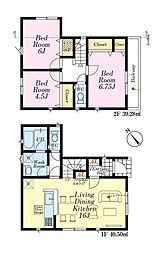 | 間取り | 4LDK 間取り内訳:リビングダイニングキッチン 16.6帖(1階)・洋室 6帖(2階)・洋室 6.1帖(2階)・洋室 4.5帖(2階)・洋室 5.2帖(2階) |
