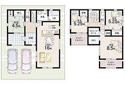 | 間取り | 4SLDK 間取り内訳:リビングダイニングキッチン 16帖・和室 4.5畳(1階)・収納 |