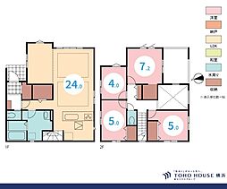 | 間取り | 3LDK 間取り内訳:リビングダイニングキッチン 20帖(1階)・洋室 6帖(2階)・洋室 7帖(2階)・洋室 5.6帖(2階) |