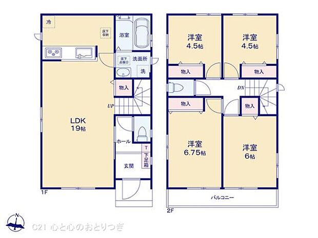 | 間取り | 4LDK 間取り内訳:リビングダイニングキッチン 19帖(1階) |
