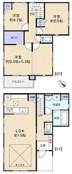 | 間取り | 3LDK 間取り内訳:リビングダイニングキッチン 20.5帖(1階)・洋室 15.4帖(2階)・洋室 5.2帖(2階)・洋室 4.8帖(2階) |
