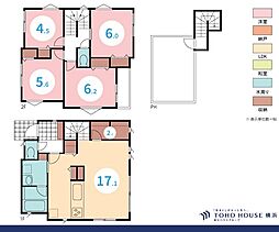 | 間取り | 4LDK 間取り内訳:リビングダイニングキッチン 18.2帖(1階)・洋室 7帖(2階)・洋室 5.3帖(2階)x2・洋室 6帖(2階) |