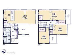 | 間取り | 3LDK(3(4)LDK) 間取り内訳:リビングダイニングキッチン 16.9帖(1階)・洋室 5.2帖(2階)・洋室 5帖(2階)・洋室 11.2帖(2階) |